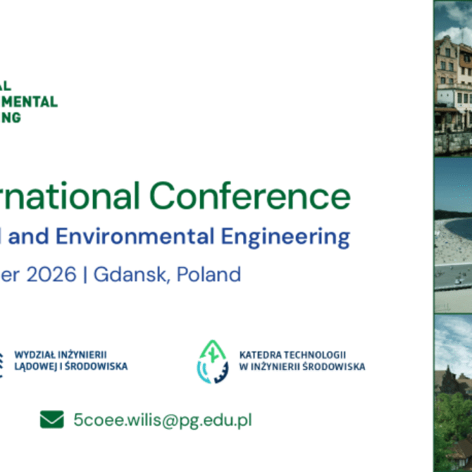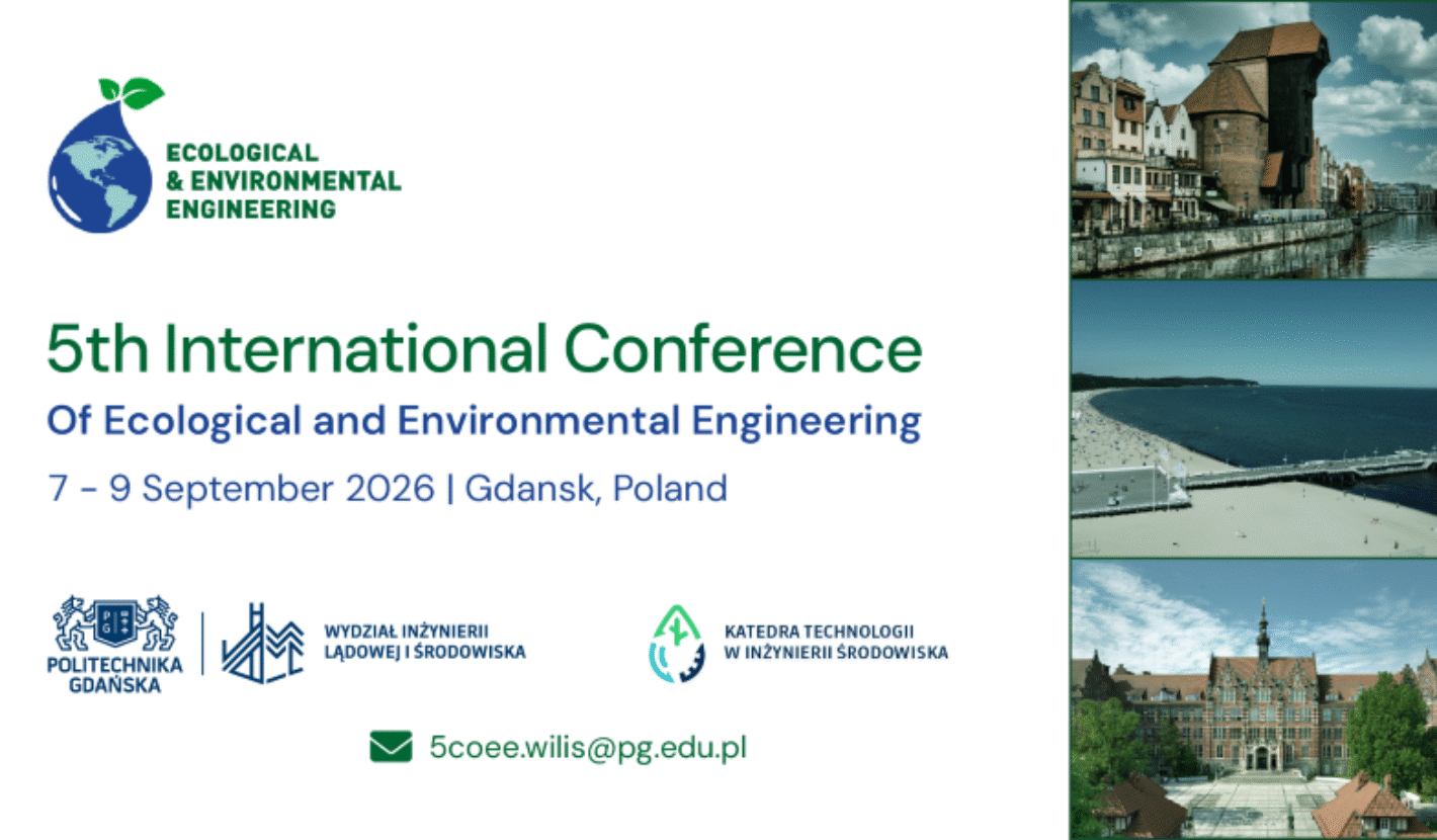 We are delighted to announce that the 5th International Conference on Ecological and Environmental Engineering (COEE) will be held from 7 to 9 September 2026 in Gdansk, Poland.